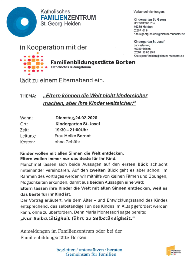 Unser Familienzentrum lädt herzlich ein zum Elternabend am 24.02.2026 im Kindergarten St. Josef.