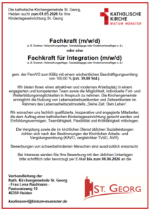 Die katholische Kirchengemeinde St. Georg, Heiden sucht zum 01.05.2026 für ihre